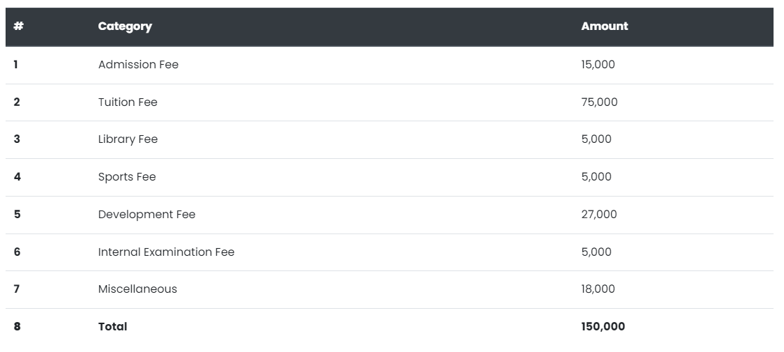 The college will charge fee from its students on annual basis. Detail of this fee is as mentioned in the picture.